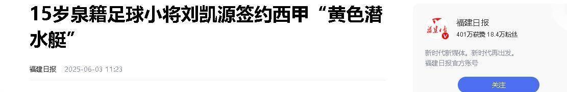 6月1日,福建泉州人刘志辉的手机被消息挤爆了。 他15岁的儿子刘凯源,刚和西班牙甲级联赛的“黄色潜水艇”比利亚雷亚尔签下一纸合同——违约金160万欧元(约1315万人民币),足够在泉州买5套房。 更惊人的是,这份合同长达五年,比多数欧洲青训球员的“一年一签”苛刻得多。